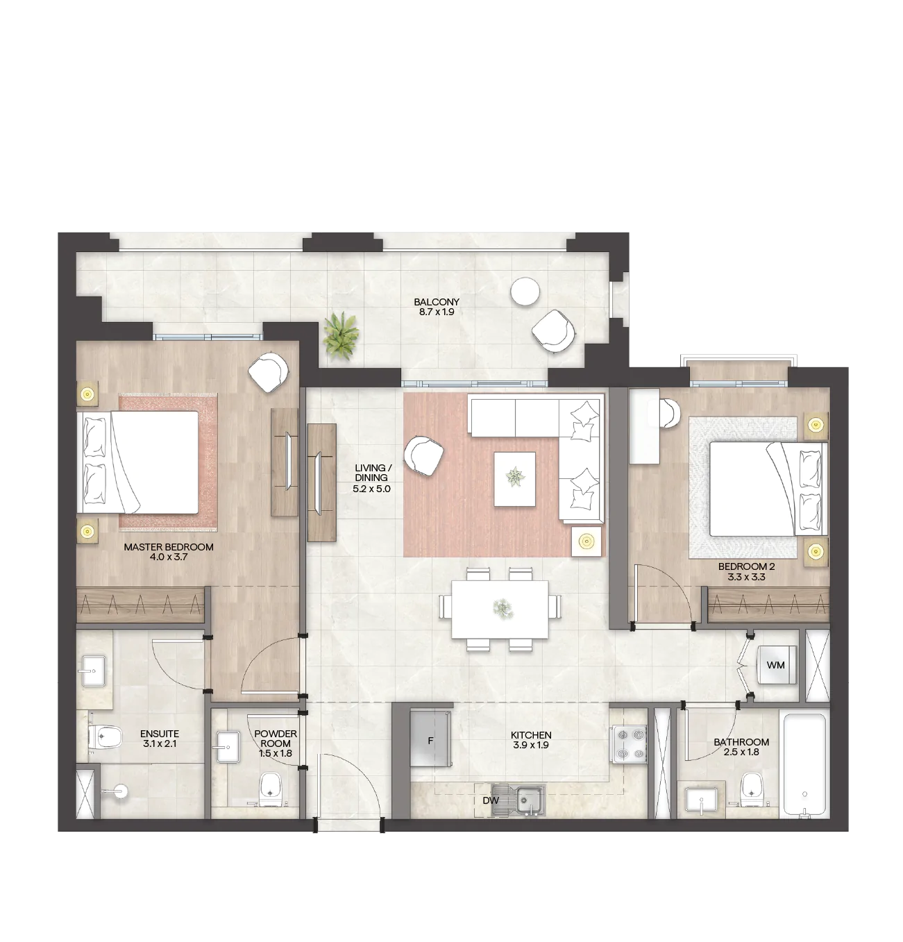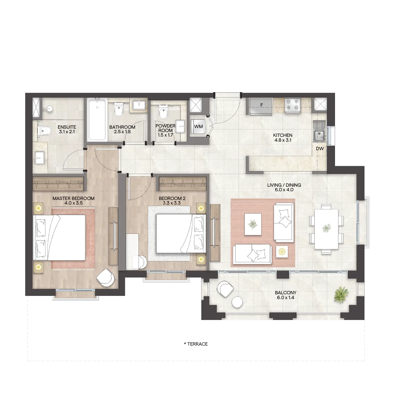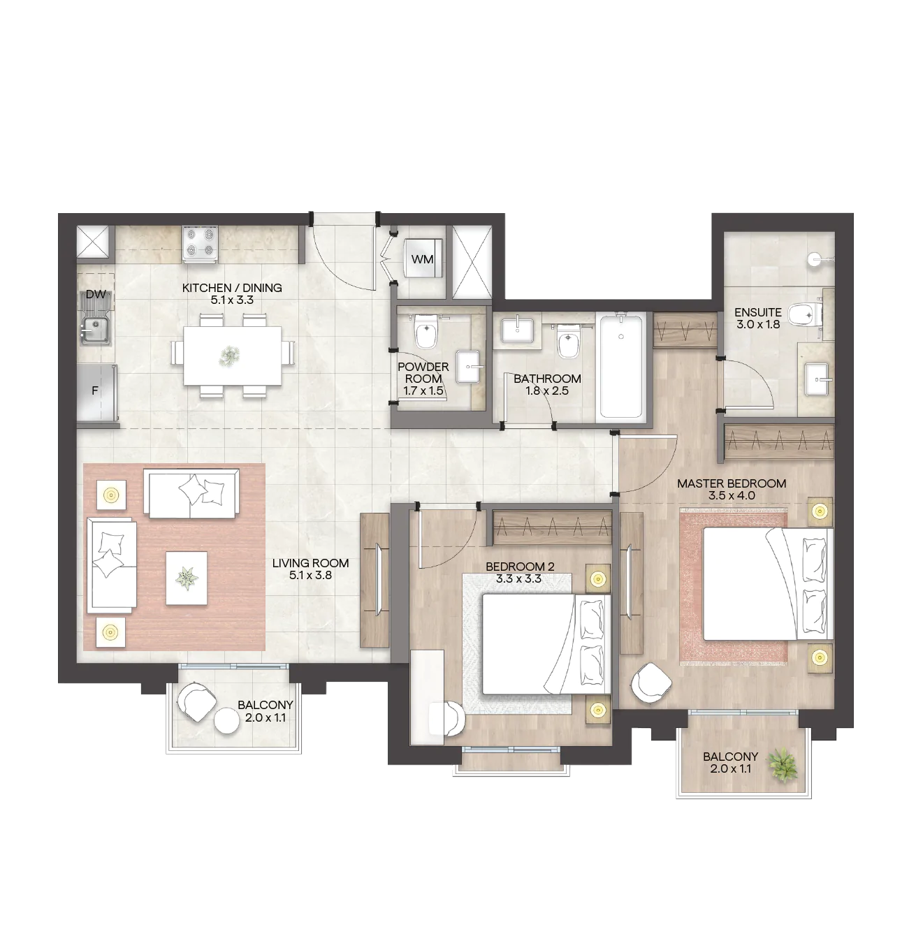 تشمل "جرانادا“ مجموعة من الوحدات السكنية الواسعة والتي تتنوع بين استوديوهات فسيحة وشقق راقية بغرفة وغرفتي وثلاث غرف نوم، تتميز بلمسات عصرية وأنيقة ومساحات معيشة واسعة وشرفات بإطلالات خلابة. وتضم الوحدات أيضاً أسقف مرتفعة ونوافذ كبيرة توفر إضاءة طبيعية، إضافة إلى توفر أفخم وسائل الراحة والرفاهية في المجمع.
