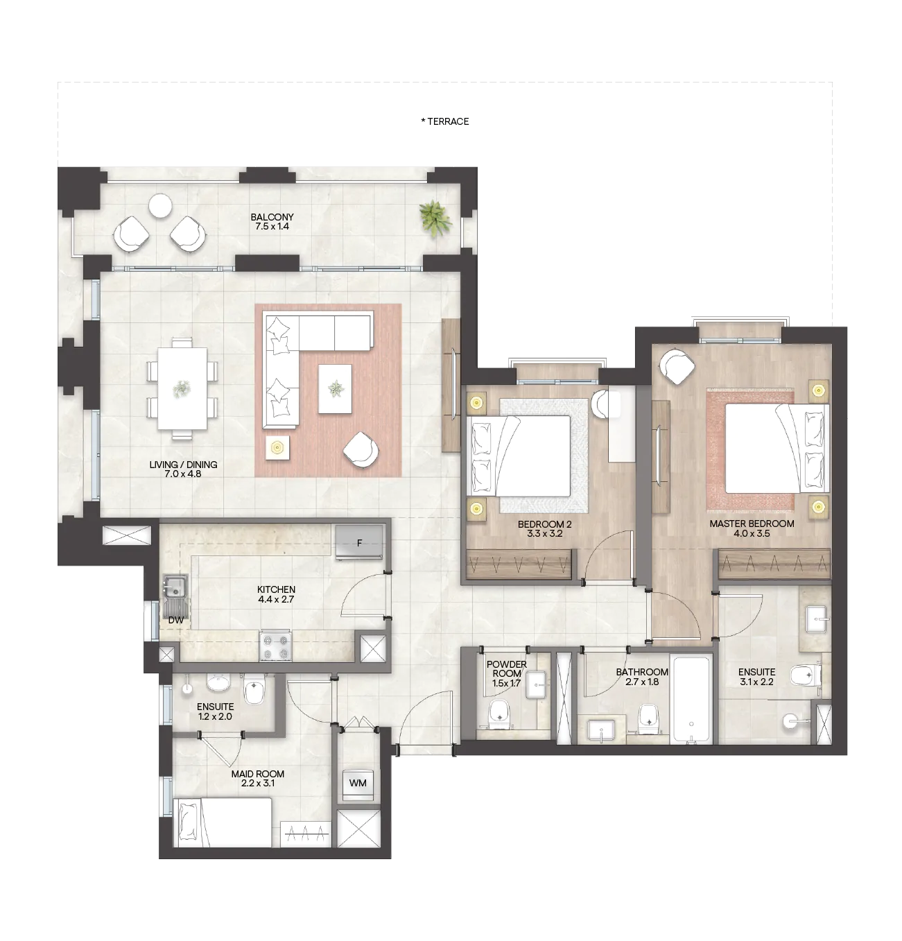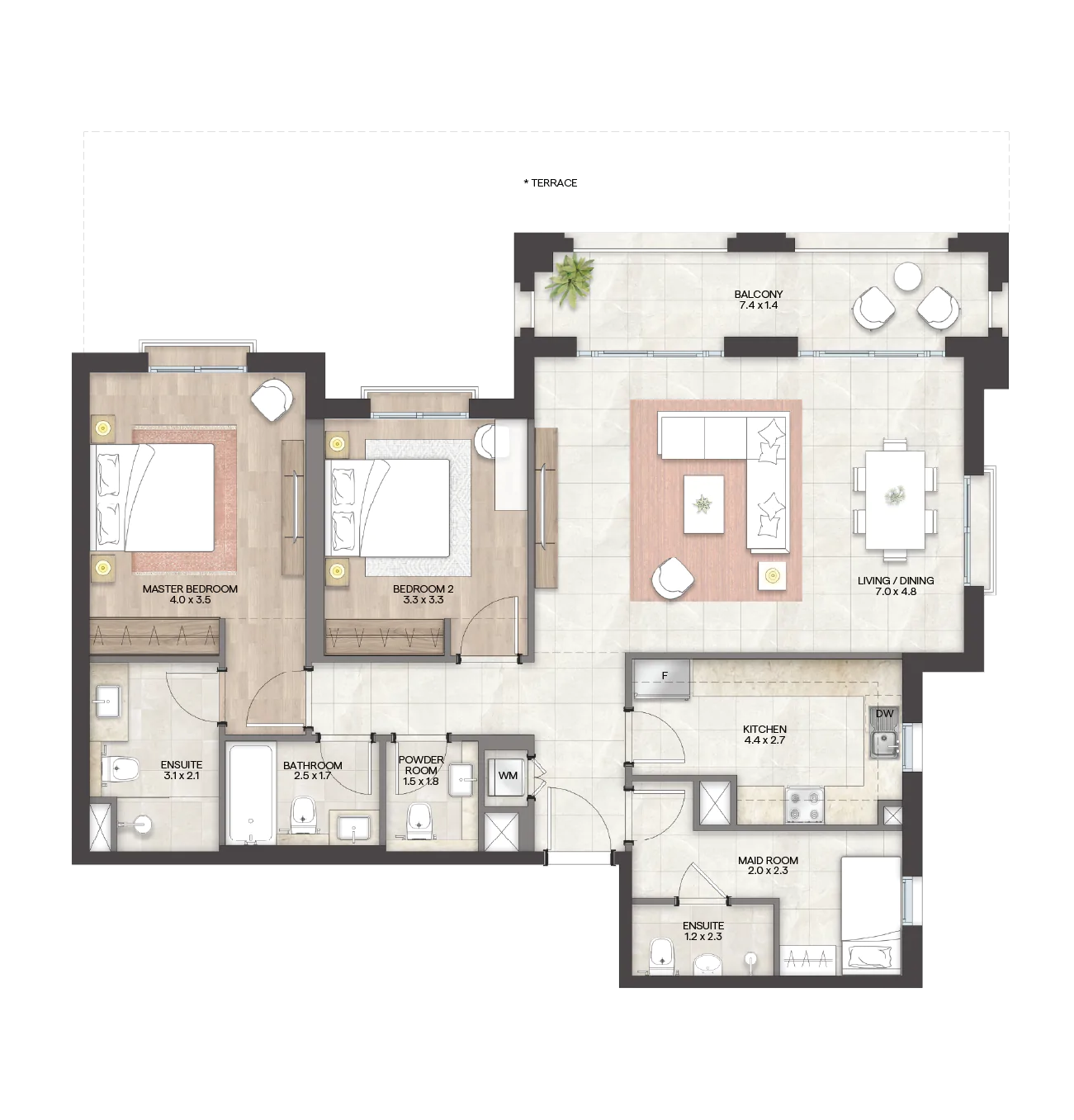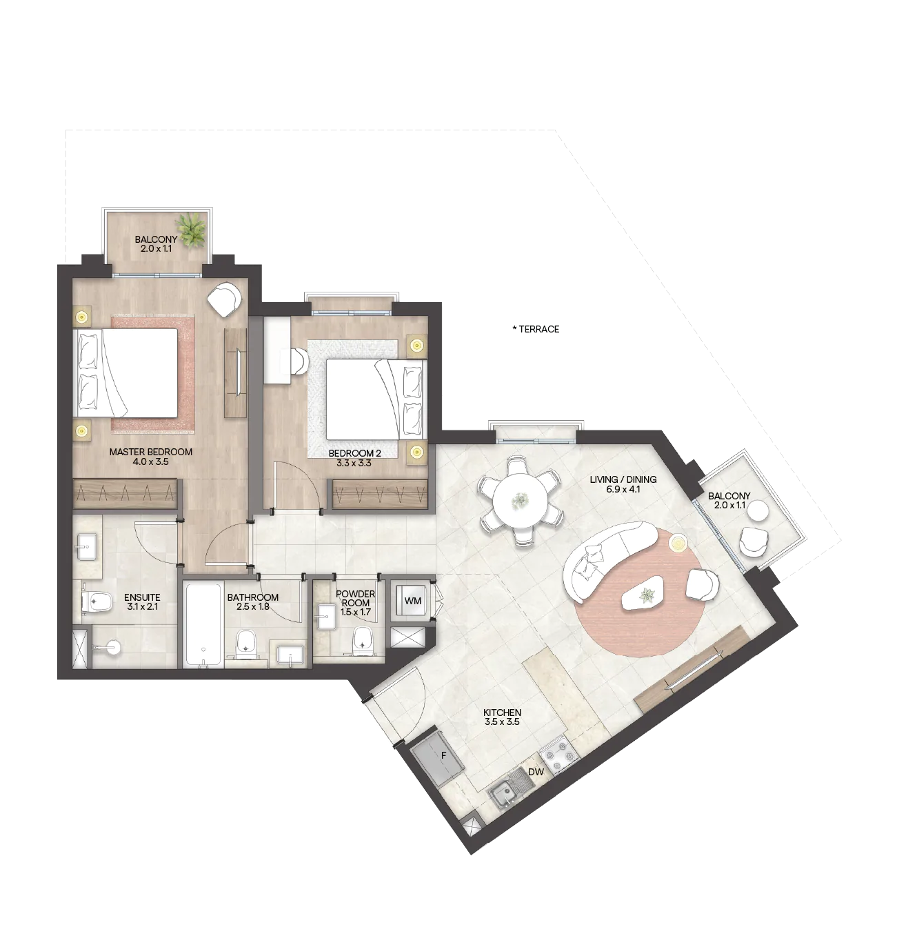 تشمل "جرانادا“ مجموعة من الوحدات السكنية الواسعة والتي تتنوع بين استوديوهات فسيحة وشقق راقية بغرفة وغرفتي وثلاث غرف نوم، تتميز بلمسات عصرية وأنيقة ومساحات معيشة واسعة وشرفات بإطلالات خلابة. وتضم الوحدات أيضاً أسقف مرتفعة ونوافذ كبيرة توفر إضاءة طبيعية، إضافة إلى توفر أفخم وسائل الراحة والرفاهية في المجمع.