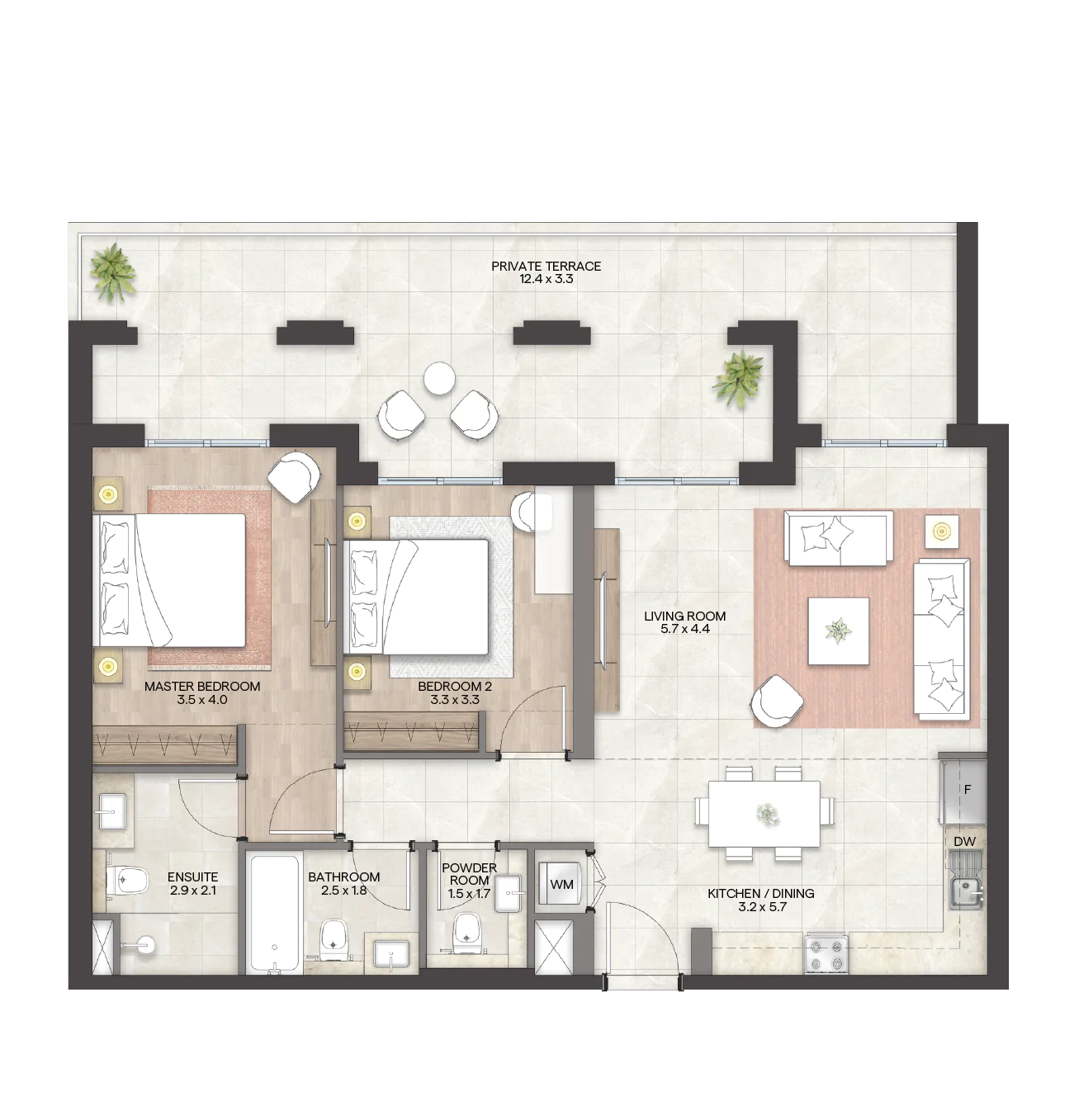 يتميز المشروع بتصاميمه المبتكرة المستوحاة من العمارة المتوسطية، وتضم المرحلة الثانية من جرانادا مجموعة من الشقق الواسعة والموزعة على ثمانية مبانٍ فاخرة يتألف كل منها من أربعة طوابق تركز على نمط المعيشة المجتمعية الشاملة.