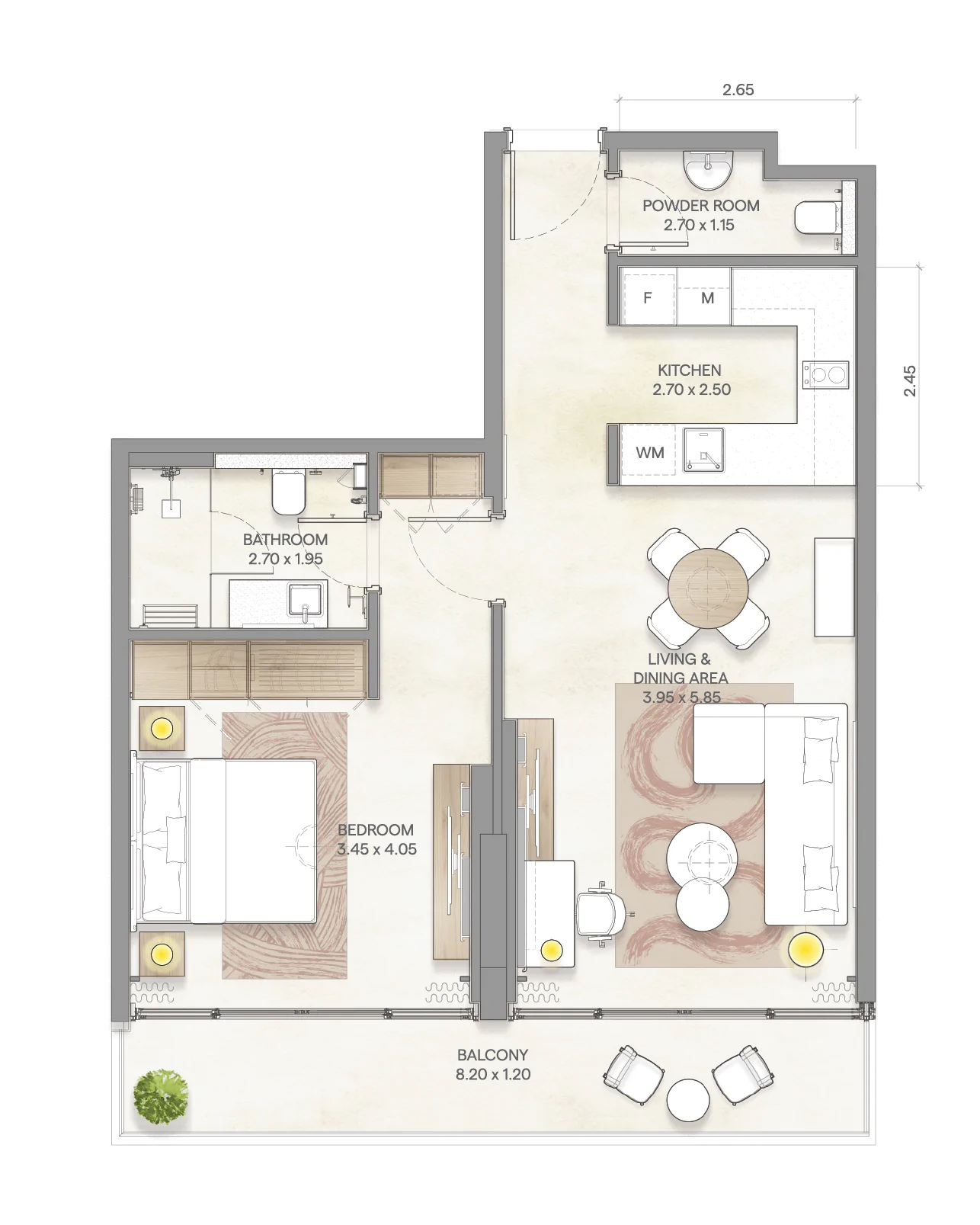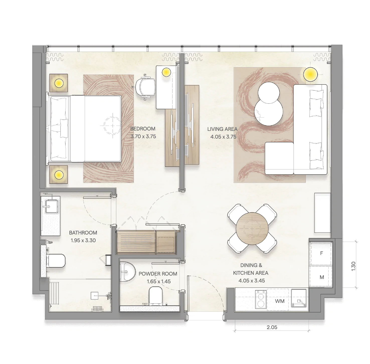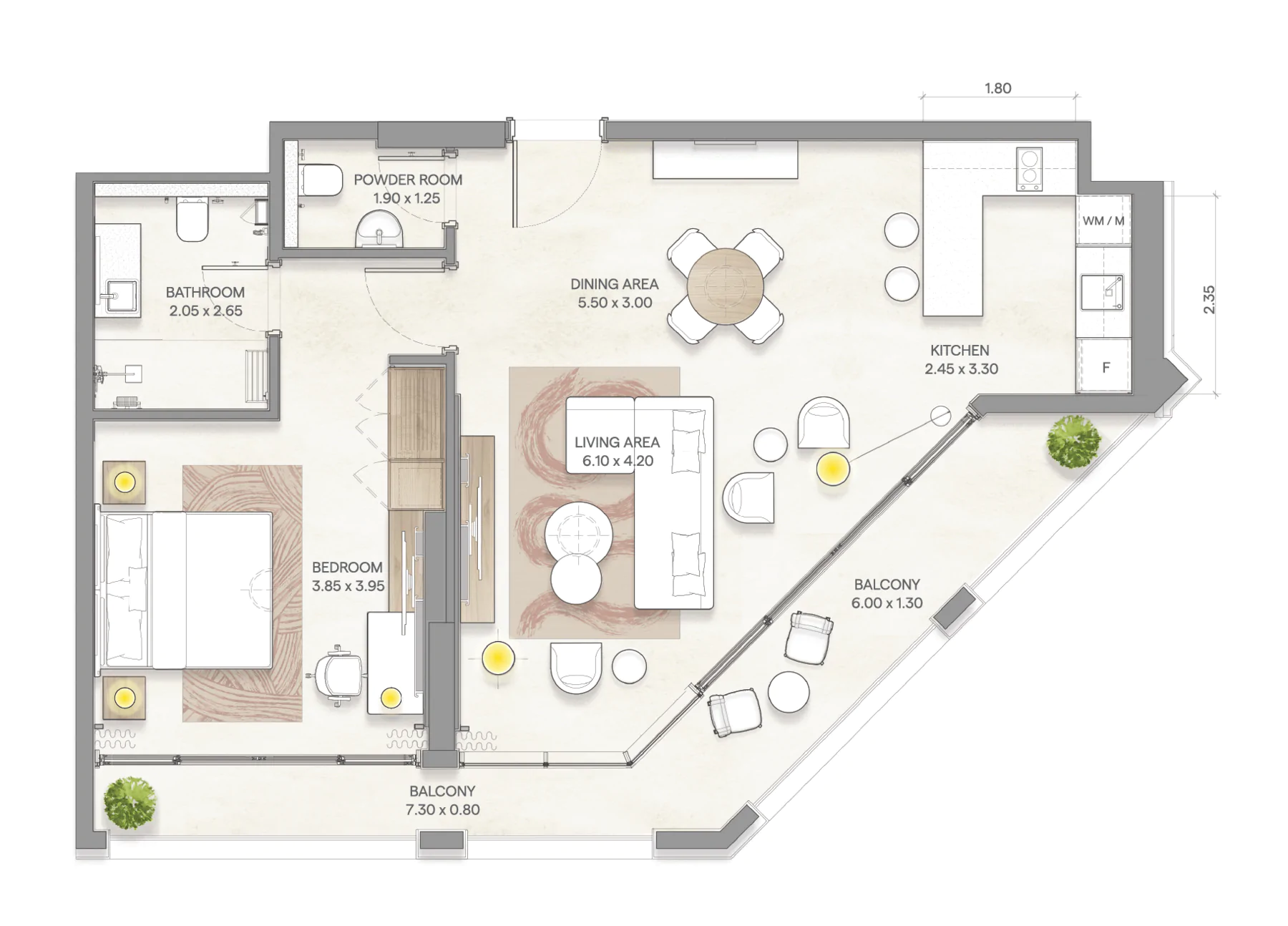 This sophisticated development brings together the best of a second home with a hotel experience in the form of hotel apartments, featuring a variety of amenities and facilities including a state-of-the-art fitness centre, ample green spaces, and a floating infinity swimming pool, located thirty meters above ground, on a bridge that connects the two buildings. Residents can also enjoy the hotel’s main restaurant and a range of retail, food and beverage outlets which include several renowned eateries and cafés.