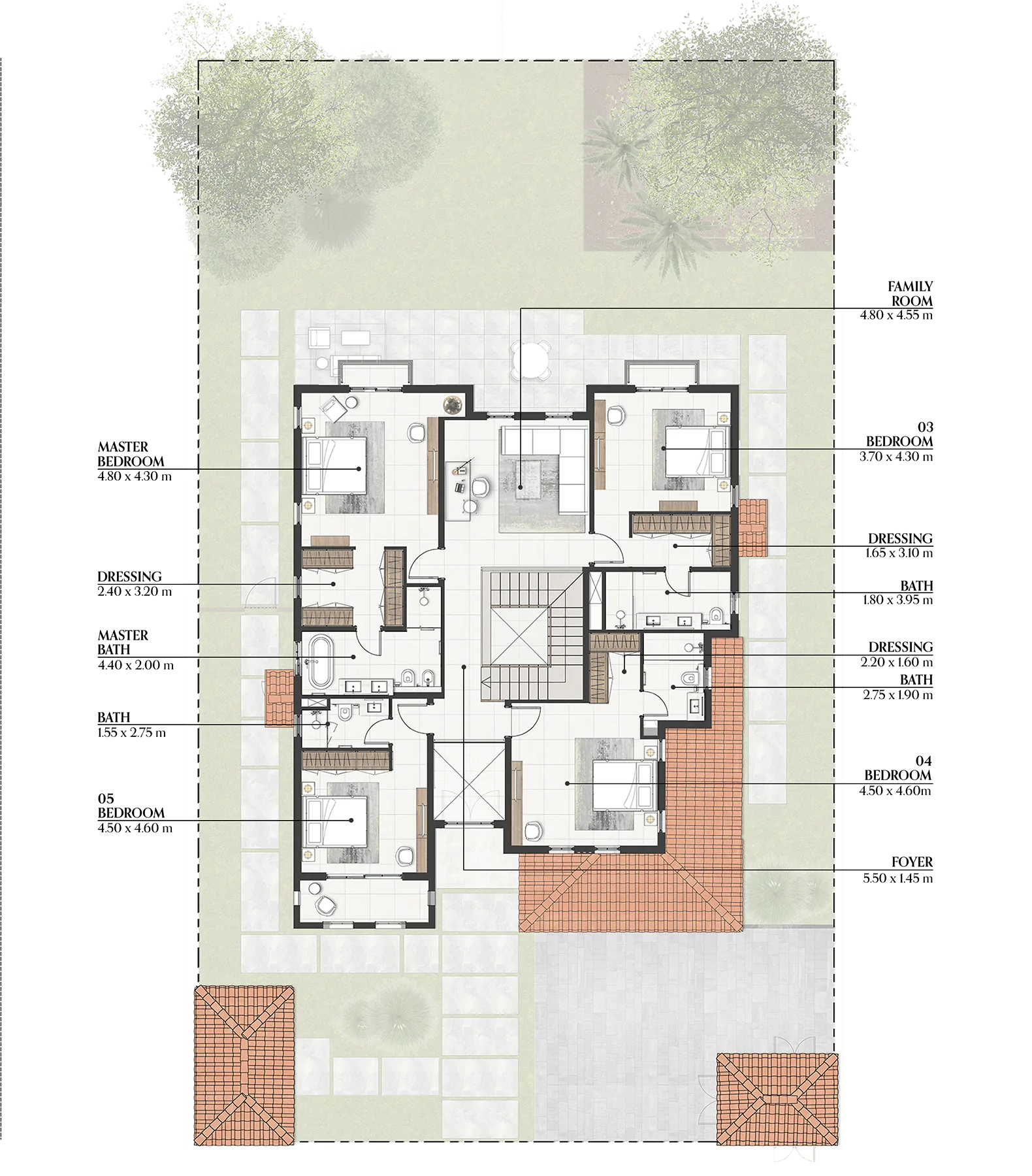 The communal areas within Seville are designed to be open and inviting with beautifully designed façades, open gardens, and spacious courtyards, providing relaxing leisure spaces for everyone to enjoy.