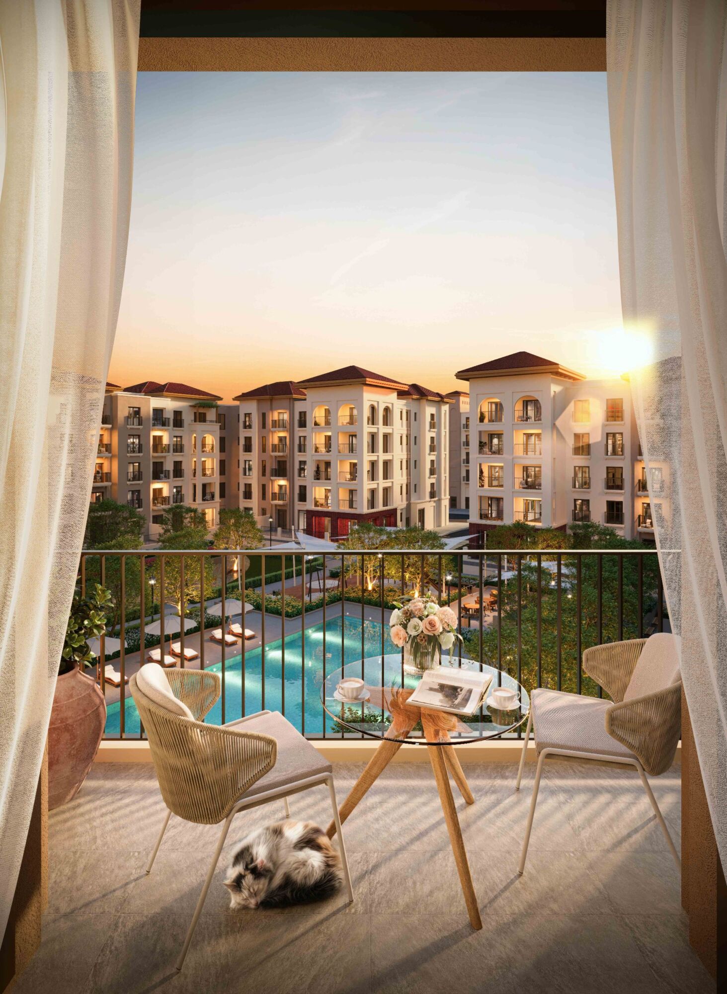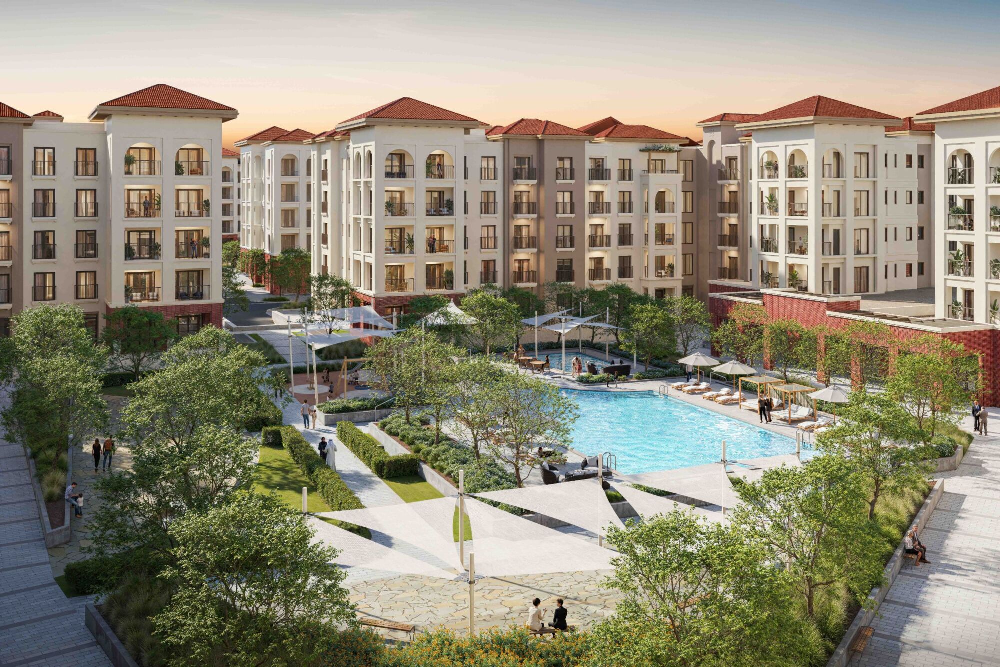 This premium apartment community is fully equipped to cater to all types of residents and all age groups, making it a true multi-generational destination. Residents have direct access to fully facilitated community centers consisting of fitness spaces, cafés, lounge areas, kids play areas, swimming pools and shaded playgrounds. The communal areas at Granada are designed to be welcoming with detailed facades, open gardens and spacious courtyards, creating luxurious leisure spaces.