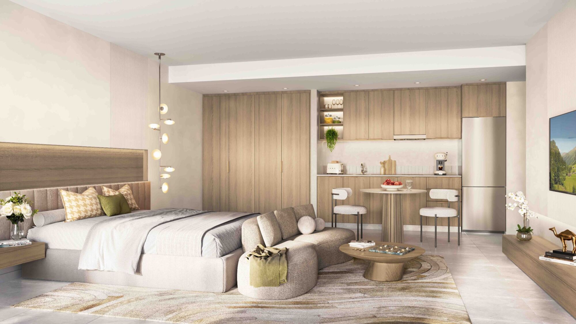 Granada will comprise spacious and upscale studios, one, two-, and three bedroom- apartments with modern and elegant finishings, and high ceilings. Each unit includes a generous living space, sweeping balconies, and access to top-class amenities within the community. All apartments in Granada are designed to feature large windows, creating a bright and airy atmosphere, filled with natural light.