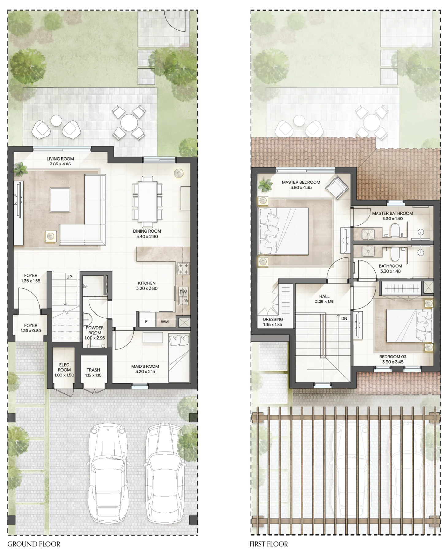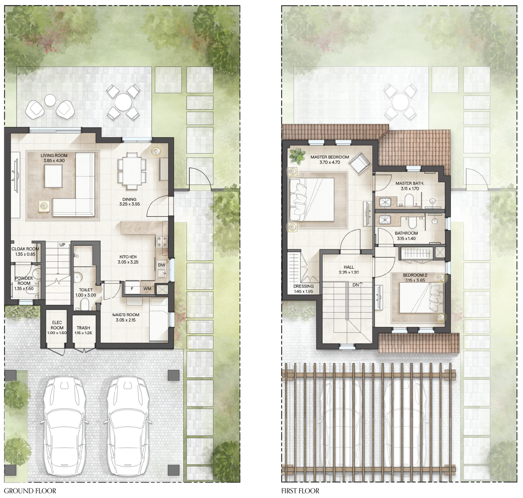 Complete with all the comforts of modern living, Carmona offers stylish and spacious 2-bedroom townhouses for sale in Zayed City C. Each thoughtfully designed home blends indoor-outdoor living with open floor plans, efficiently designed kitchens, elegant finishings, and easy access to top-class amenities within the community.